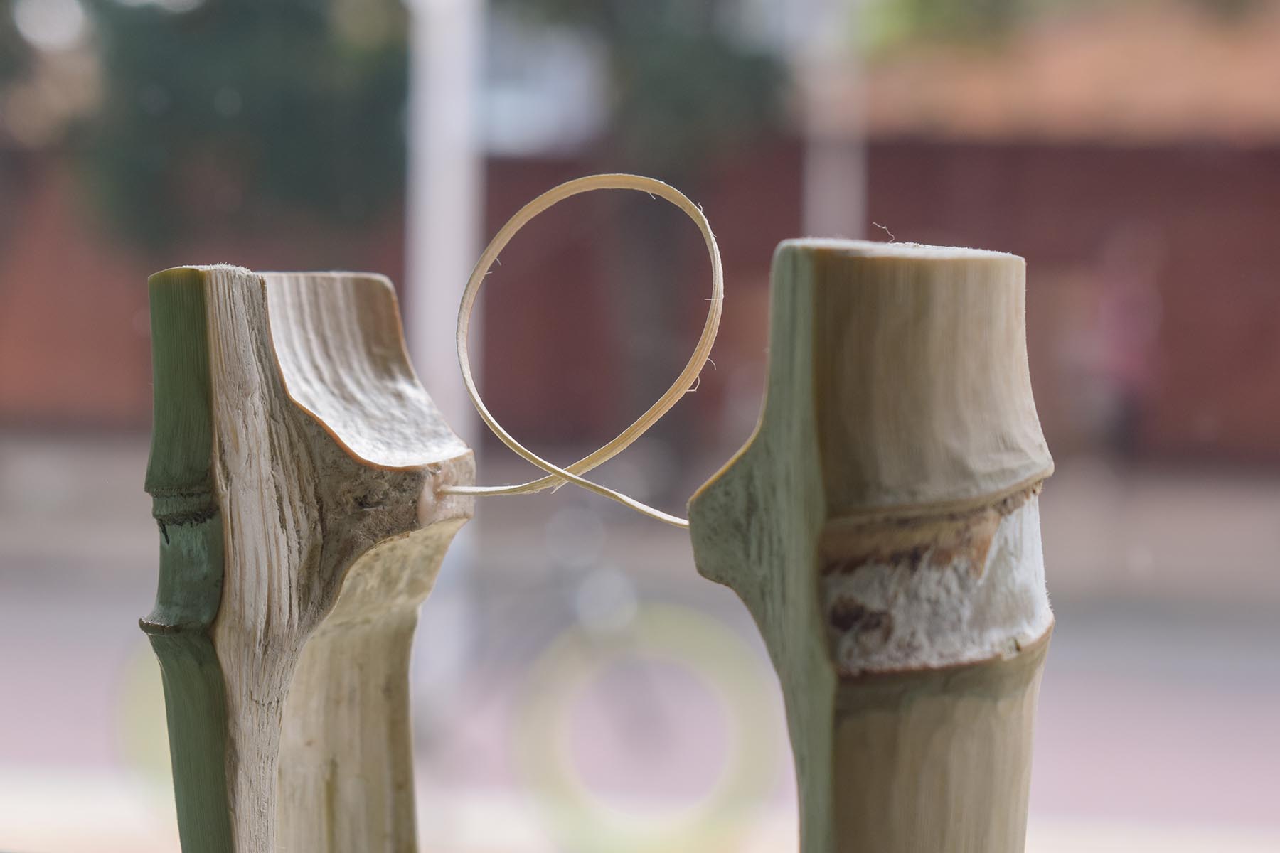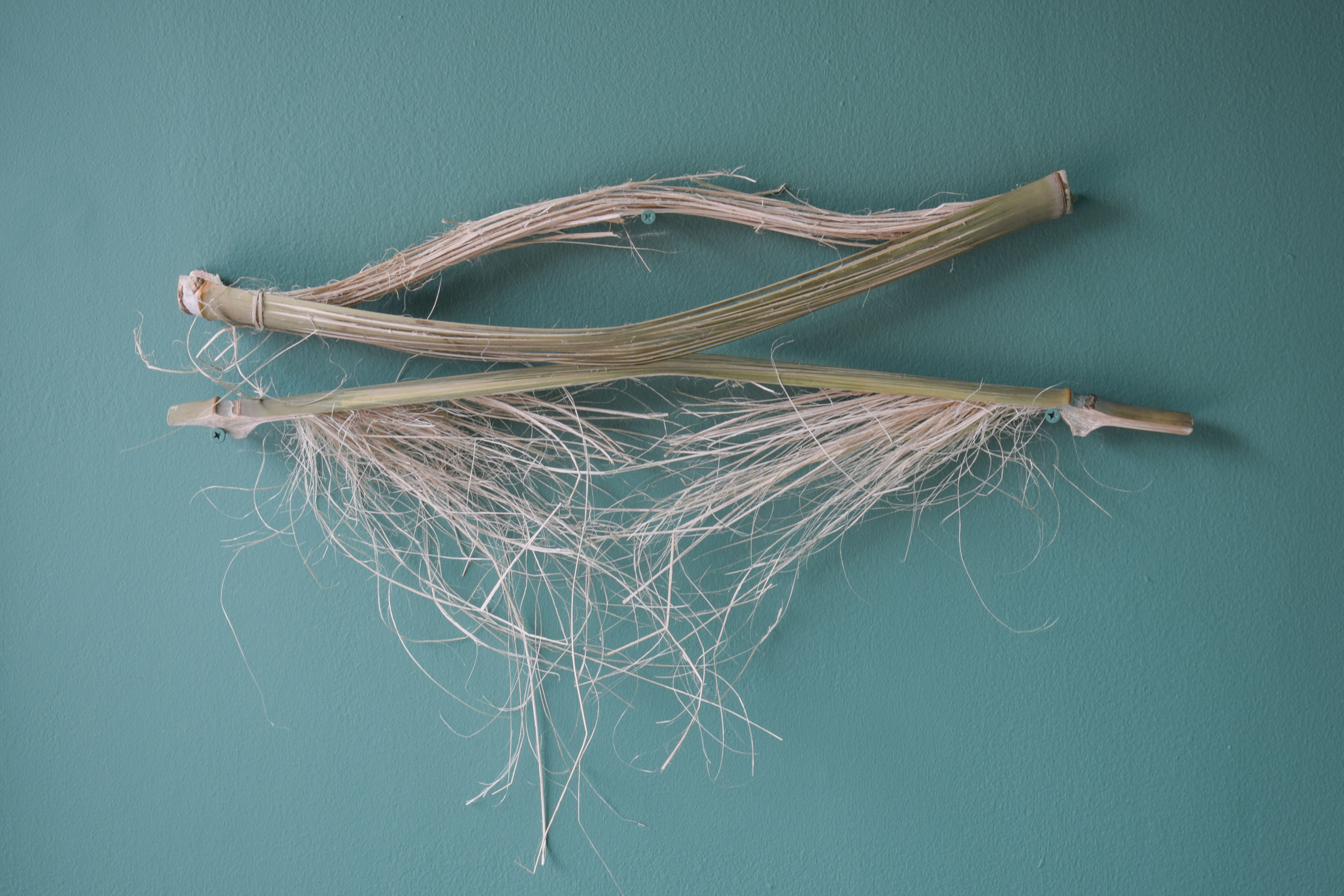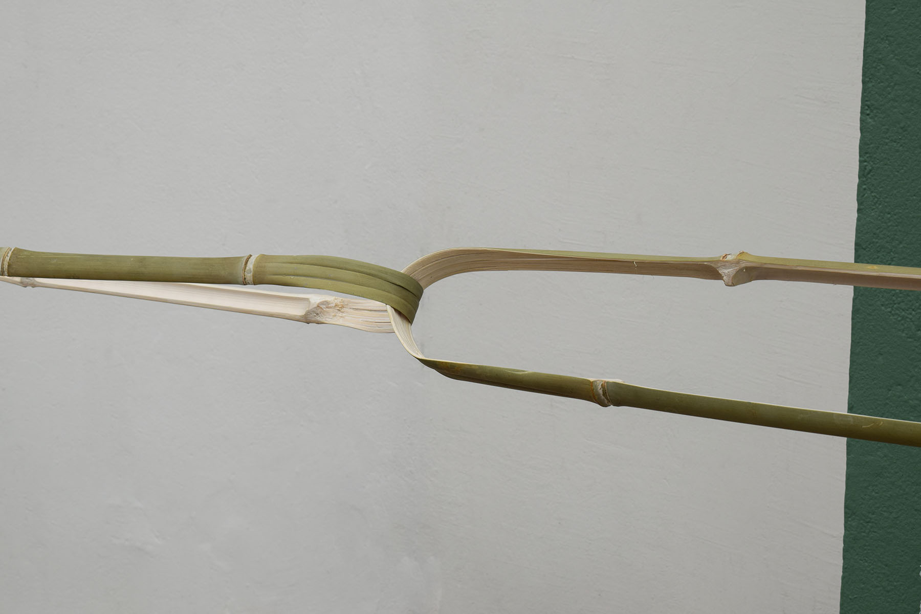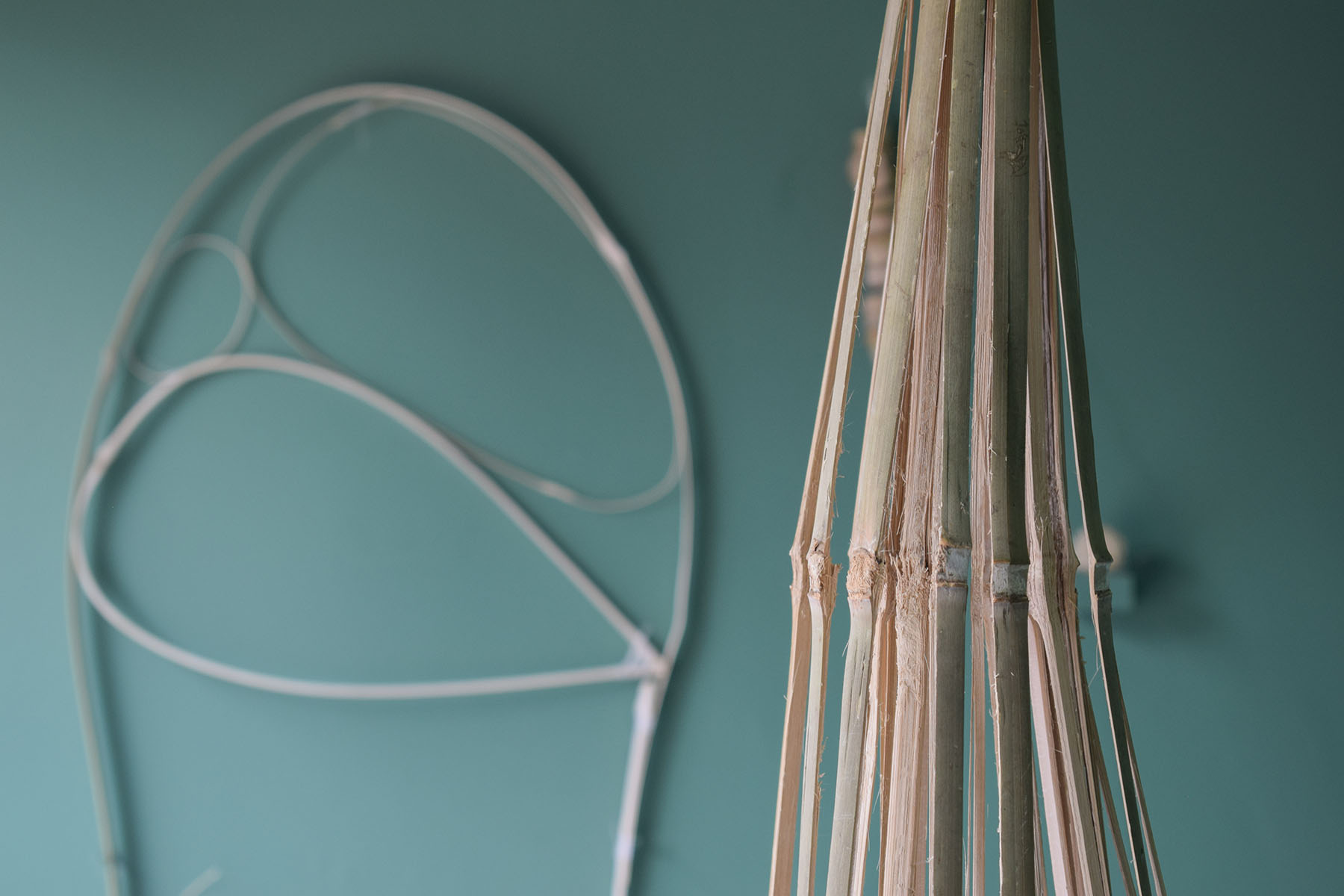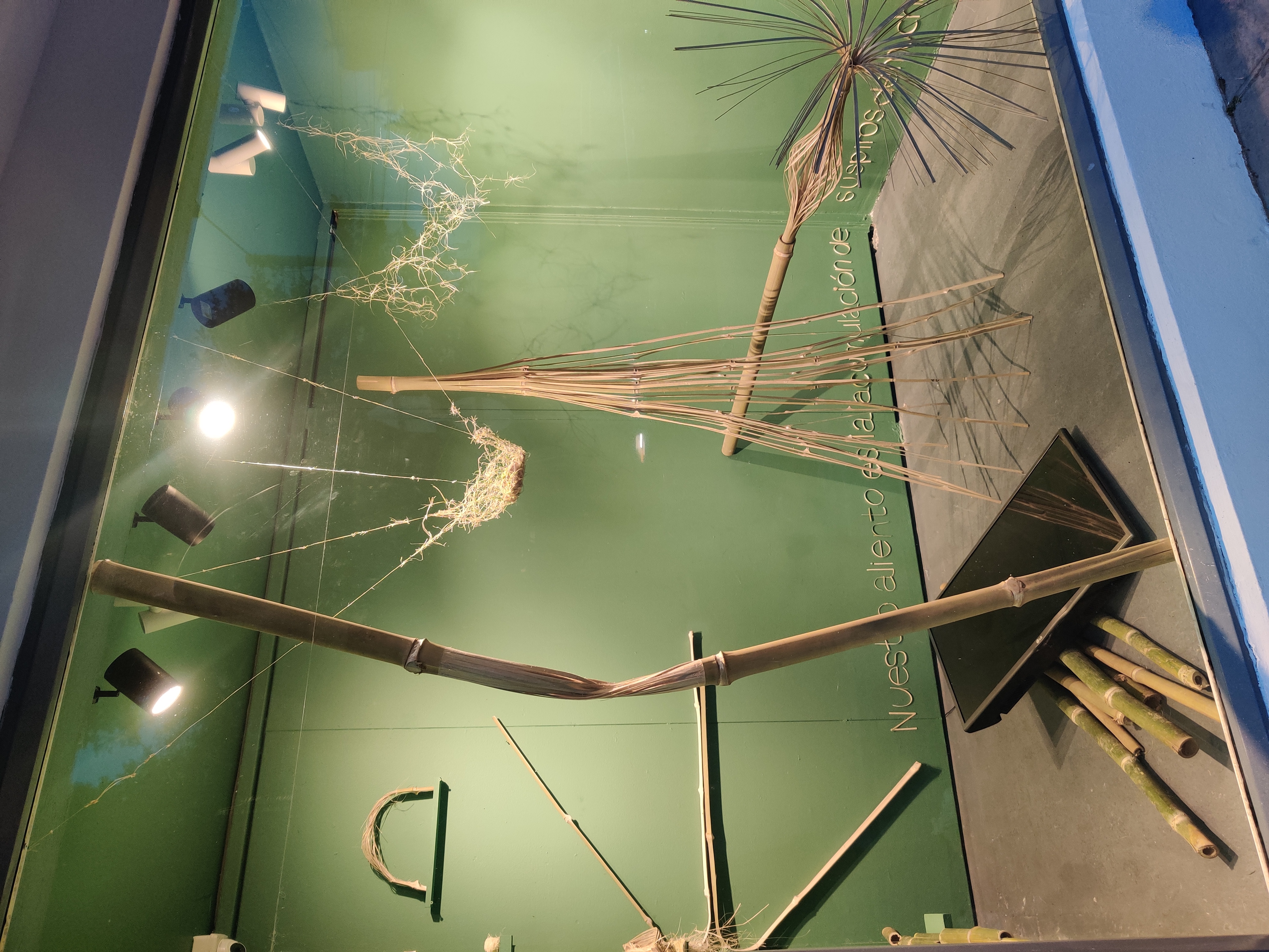 Comenzamos desde el silencio. Despacio, uniendo círculos que se juntan con los cuerpos de este diálogo entre una planta y tres mujeres. Estar con la guadua empieza por preguntarse: ¿Qué dice? ¿Cómo lo dice? Y solo sale silencio de esa vara. Empieza a hablar despacito, toca sentarse a oírla con paciencia y suavidad. Sacamos herramientas que nos hacen fraccionar el tiempo porque la planta nos mostró que era una forma de hablar. Nos sentamos juntas con ella sin buscar ninguna forma. La forma deviene del equilibrio que vendrá después. Más lento, más atentas, con cuidado que te cortas. Para, sin prisa. Haz nudos. Nudos fuertes. Cuando de un nudo comienza a nacer otra planta de guadua, este se hace más grueso, consistente, terco. La terquedad es como un límite, la manera en que la guadua nos guía y nos muestra sus posibilidades. Un día empezó a hablar bajito: Soy una mujer rizoma que conecta y apoya, que sostiene y nutre. Soy la raíz del manglar que, como un brazo gigante, abraza. Somos tres puntos de apoyo para residir. En el nudo tengo la resistencia y la vida. En la humedad me ablando y me acomodo. Soy el canto del regazo, el manto donde caer. Soy una red que anuda y ayuda, que sostiene nudos y apalabra gestos. El movimiento rápido de los dedos me deja sentir las falanges palpitar. Sus falanges como mis nudos. Me contorsiono y las obligo a doblarse. Me artículo, me lesiono y me fracciono. Soy hábil y quiero usar la delicadeza que existe dentro de mí junto a la rudeza que es mi salvación. Aguanto a través del entramado fibroso y respondo como un oráculo, con posibilidades y ramificaciones. No me tengan miedo que soy como una araña que acompaña peluda y quebradiza. Ellas se llenan de mí, pero no lo ven. Después dijo pasito: ¡Suspira rápido que van a demoler el jardín!