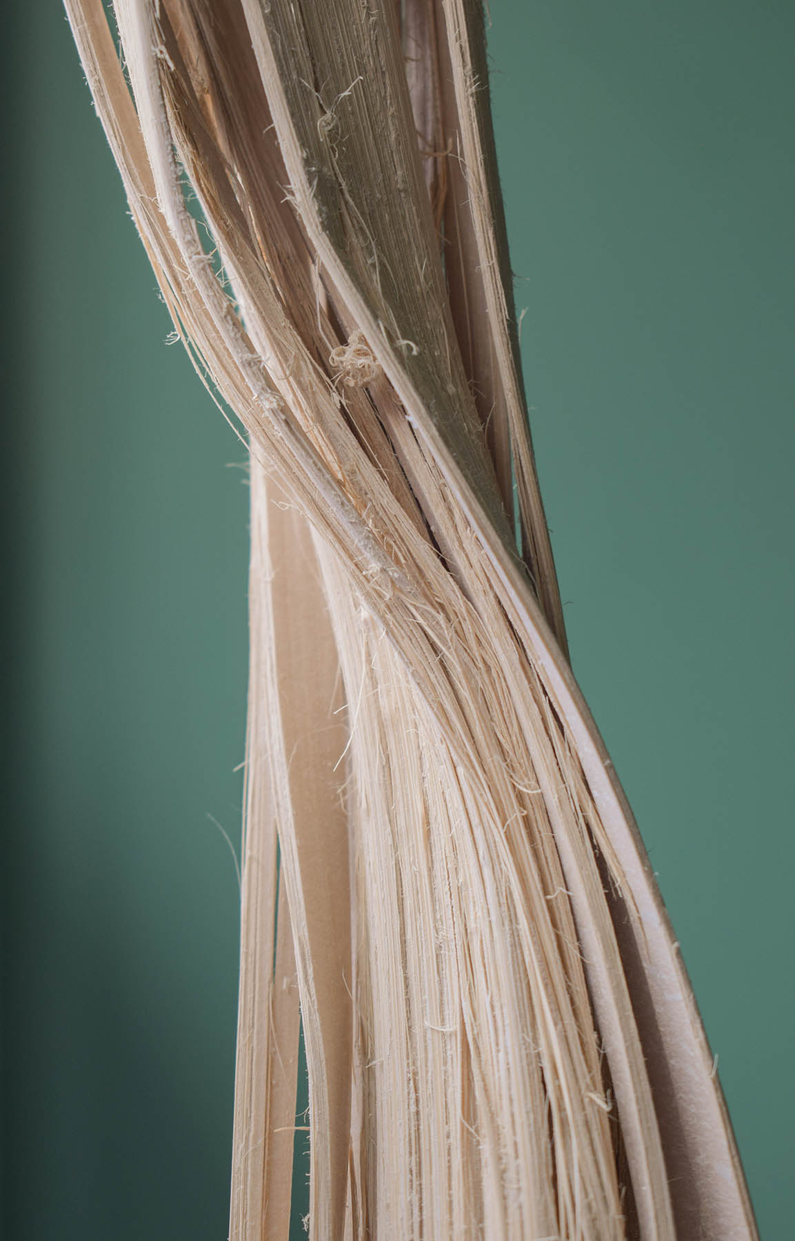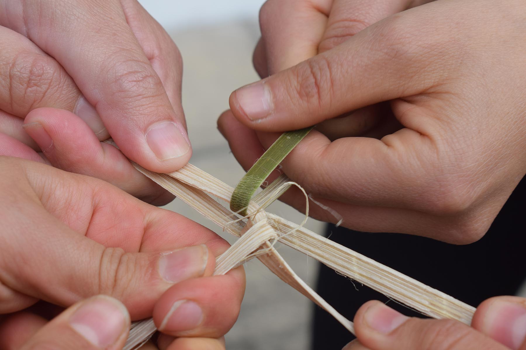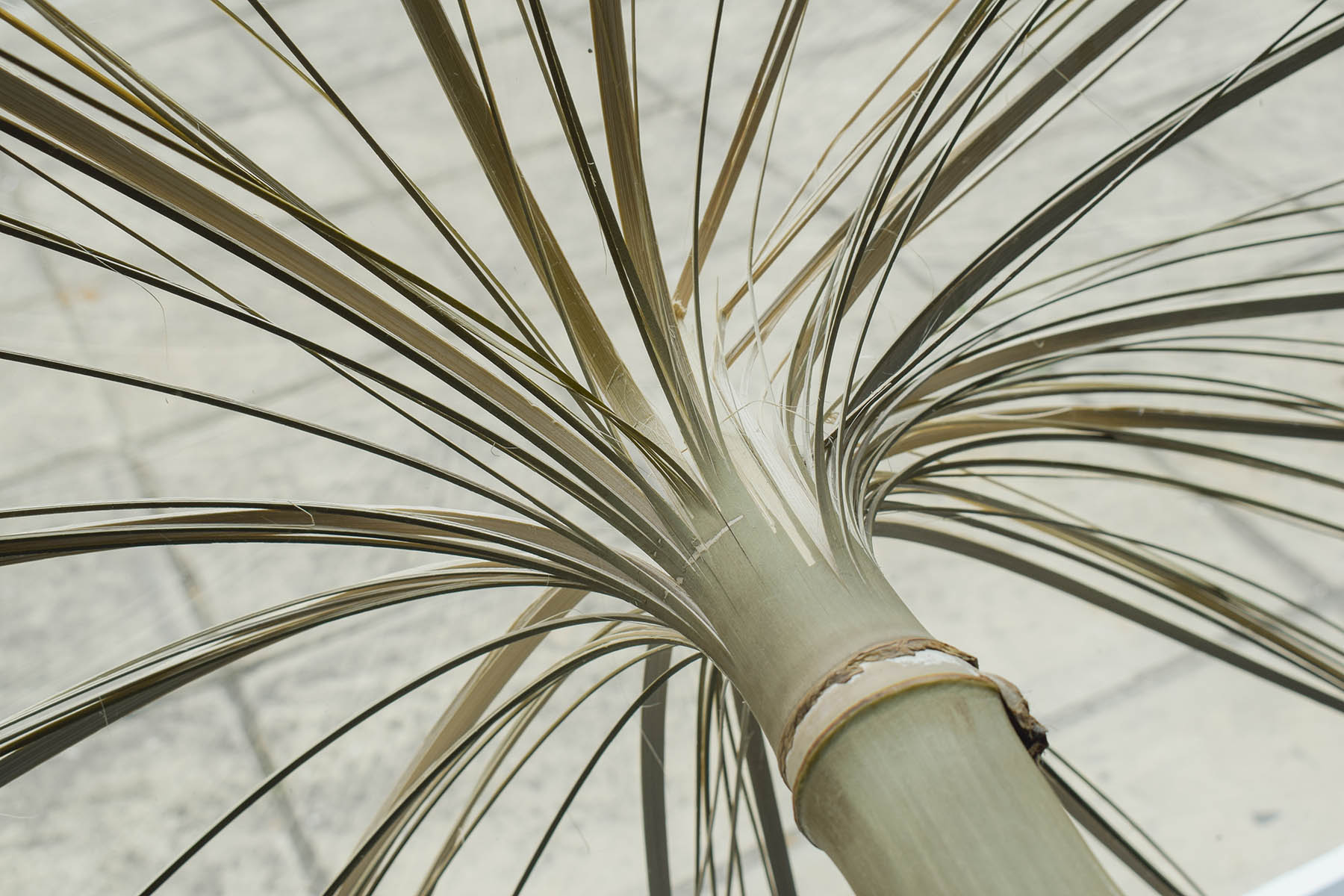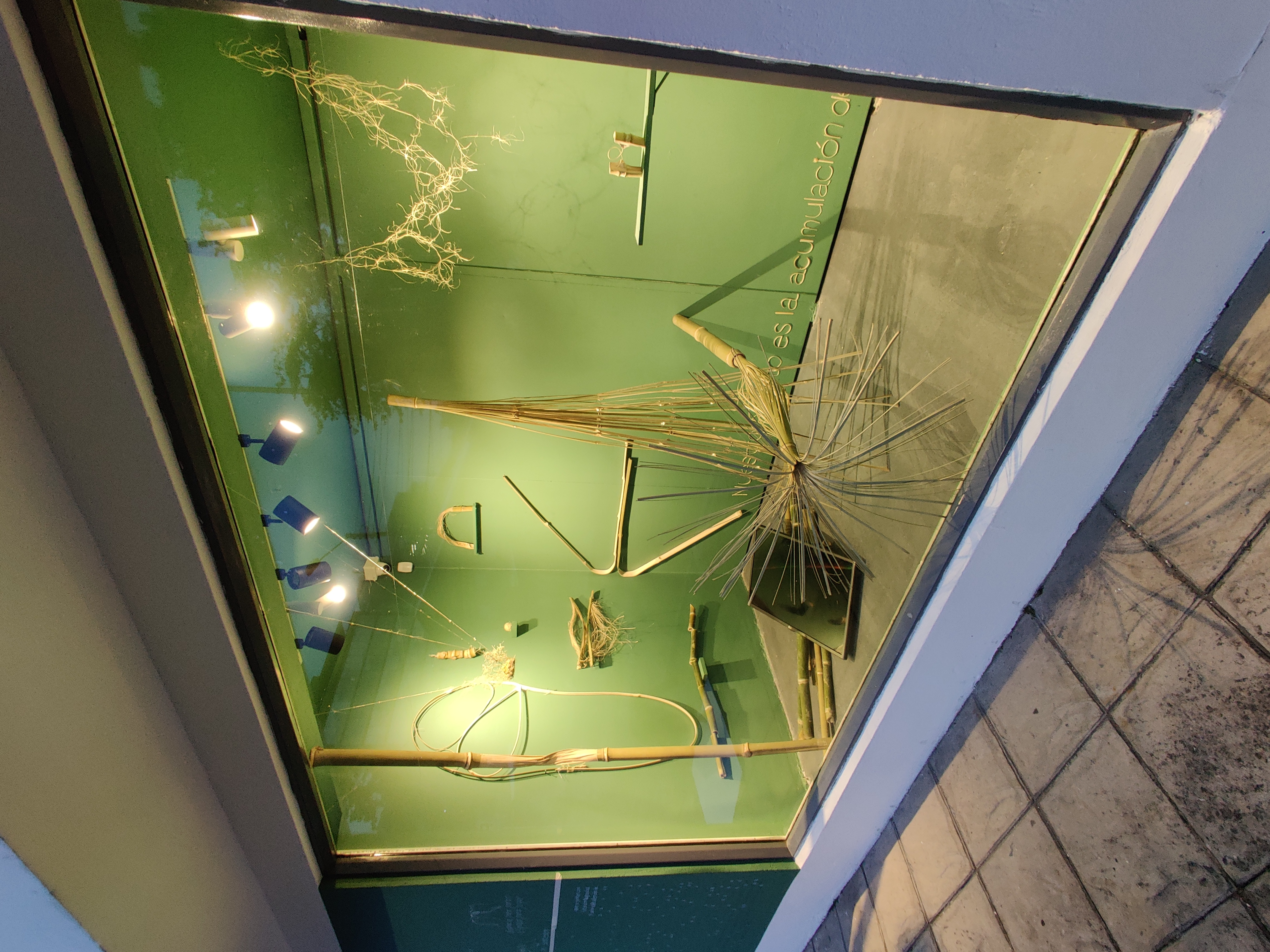 Comenzamos desde el silencio. Despacio, uniendo círculos que se juntan con los cuerpos de este diálogo entre una planta y tres mujeres. Estar con la guadua empieza por preguntarse: ¿Qué dice? ¿Cómo lo dice? Y solo sale silencio de esa vara. Empieza a hablar despacito, toca sentarse a oírla con paciencia y suavidad. Sacamos herramientas que nos hacen fraccionar el tiempo porque la planta nos mostró que era una forma de hablar. Nos sentamos juntas con ella sin buscar ninguna forma. La forma deviene del equilibrio que vendrá después. Más lento, más atentas, con cuidado que te cortas. Para, sin prisa. Haz nudos. Nudos fuertes. Cuando de un nudo comienza a nacer otra planta de guadua, este se hace más grueso, consistente, terco. La terquedad es como un límite, la manera en que la guadua nos guía y nos muestra sus posibilidades. Un día empezó a hablar bajito: Soy una mujer rizoma que conecta y apoya, que sostiene y nutre. Soy la raíz del manglar que, como un brazo gigante, abraza. Somos tres puntos de apoyo para residir. En el nudo tengo la resistencia y la vida. En la humedad me ablando y me acomodo. Soy el canto del regazo, el manto donde caer. Soy una red que anuda y ayuda, que sostiene nudos y apalabra gestos. El movimiento rápido de los dedos me deja sentir las falanges palpitar. Sus falanges como mis nudos. Me contorsiono y las obligo a doblarse. Me artículo, me lesiono y me fracciono. Soy hábil y quiero usar la delicadeza que existe dentro de mí junto a la rudeza que es mi salvación. Aguanto a través del entramado fibroso y respondo como un oráculo, con posibilidades y ramificaciones. No me tengan miedo que soy como una araña que acompaña peluda y quebradiza. Ellas se llenan de mí, pero no lo ven. Después dijo pasito: ¡Suspira rápido que van a demoler el jardín!