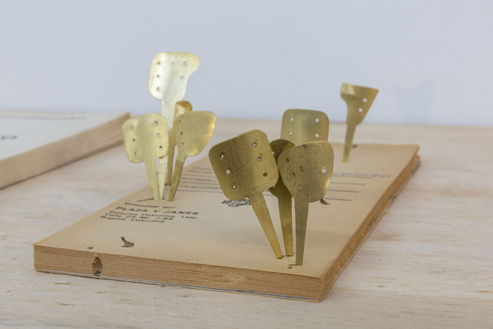 A ver, a ver –me dijo. Mire, son artefactos fuera de lugar. Así como la piedra Roseta es un diccionario, la batería de Bagdad una linterna, el Pájaro de Saqqara un modelo de avión, se encontraron estas joyas en estos libros que ya no eran libros sino objetos, sin lomos. Al quitarles los lomos se imposibilitaron como libros. A fin de cuentas –a ver si me explico- una biblioteca de libros carcomidos por gusanos sin lomos. El residuo es un proceso que se conoce como Osteosíntesis de bronce. Nosotros publicamos y ellos des-publican; el orden es un punto con unas joyas en los libros, libros que ya no son libros sino hojas apiladitas. Nosotros estamos aquí y ahora. Ellos reinterpretan, pero no sabemos para qué son las joyas, si es que ellos son vanidosos o superficiales. Son dos tiempos contestados; es el mundo, pero no es el mundo; es el tiempo, pero no es este tiempo, es el tiempo en simultáneo. Los libros son ruinas y los huecos son marcas de tiempo. Un cultivo es un reloj. Aprender a atravesar es aprender a leer – insistía, casi gritando como una arenga. Pero no podemos usar estas palabras porque para lo que nosotros es leer para ellos es otra cosa. No sabemos – me dijo. Yo tengo unos documentos, dice, pero no se los voy a mostrar.